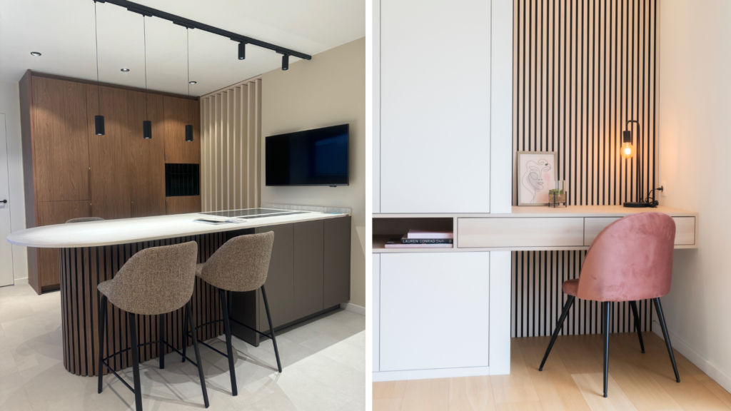 Nieuwbouw- of renovatieproject? Bij ons reken je op één aanspreekpunt voor al je maatmeubilair en afwerking. We ontwerpen én voeren uit. Droom je van een praktische, stijlvolle en mooie oplossing? Daar gaan we samen voor.